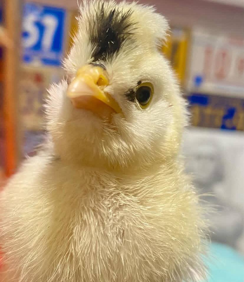 Key features include a large, fluffy crest, a V-shaped comb, and a fifth toe.